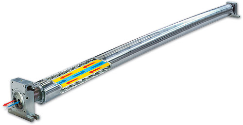 Il cilindro allargatore Tecnomec 3 con albero raffreddato tramite ricircolo continuo di acqua è consigliato per alte temperature ed è utilizzato per la posizione IR, seccheria.